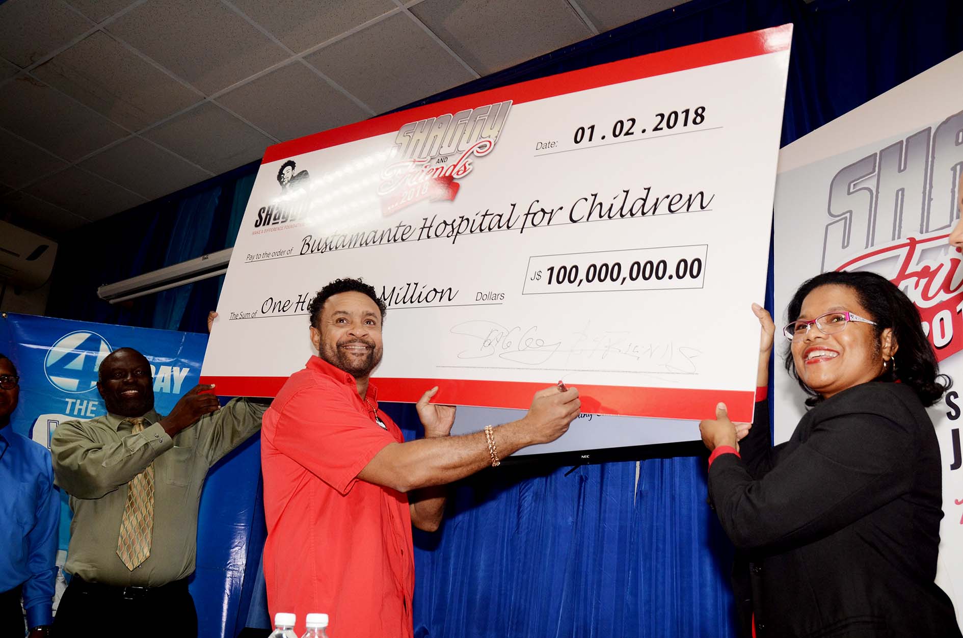 The Bustamante Hospital For Children (BHC) yesterday received $100 million from the Shaggy Make a Difference Foundation, meeting the target that conceptualiser and founder, Orville 'Shaggy' Burrell, announced last year.